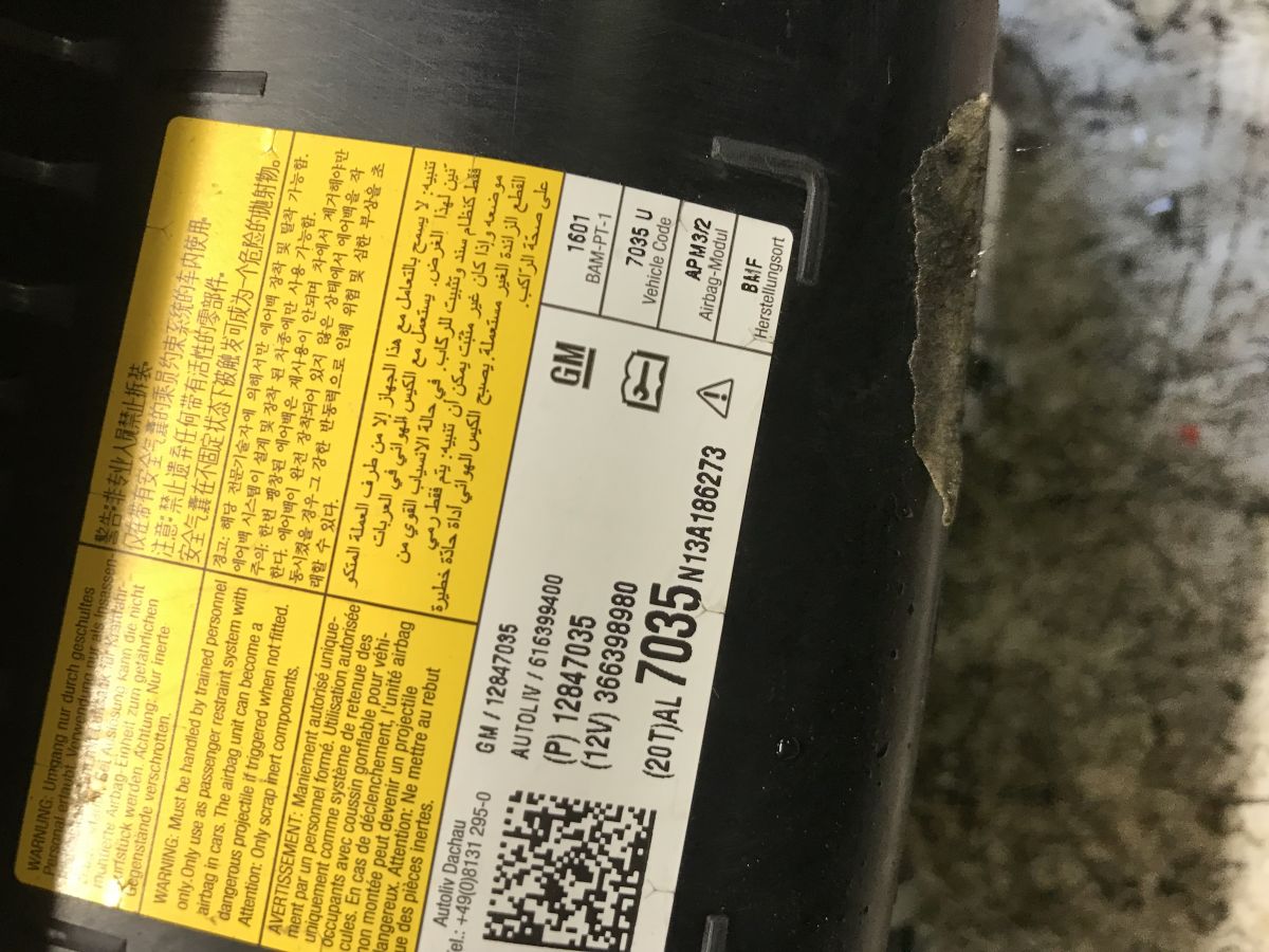 12847035 airbag pasager Opel astra j