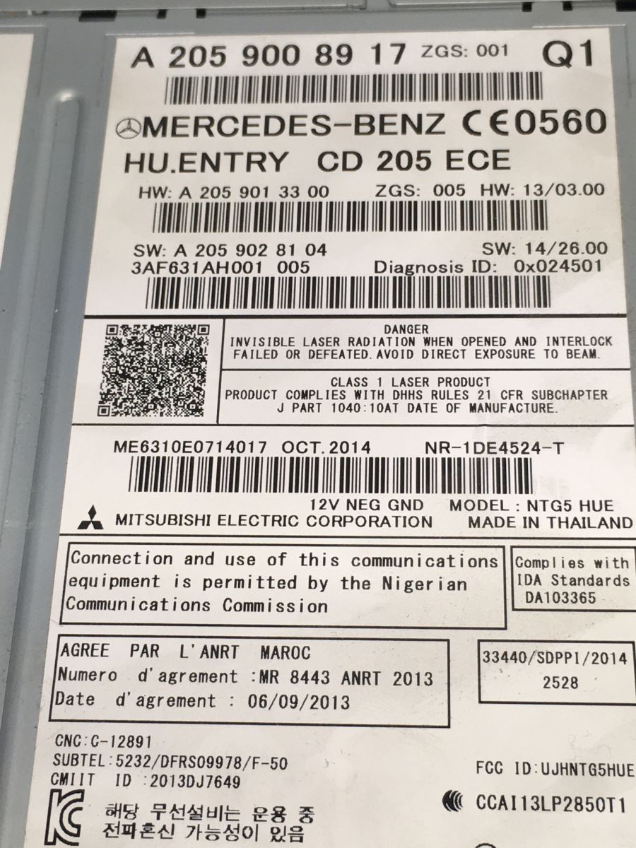 Unitate Multimedia Mercedes C-Class W205/S205 Break 2.2 Motorina 2015, A2059008917